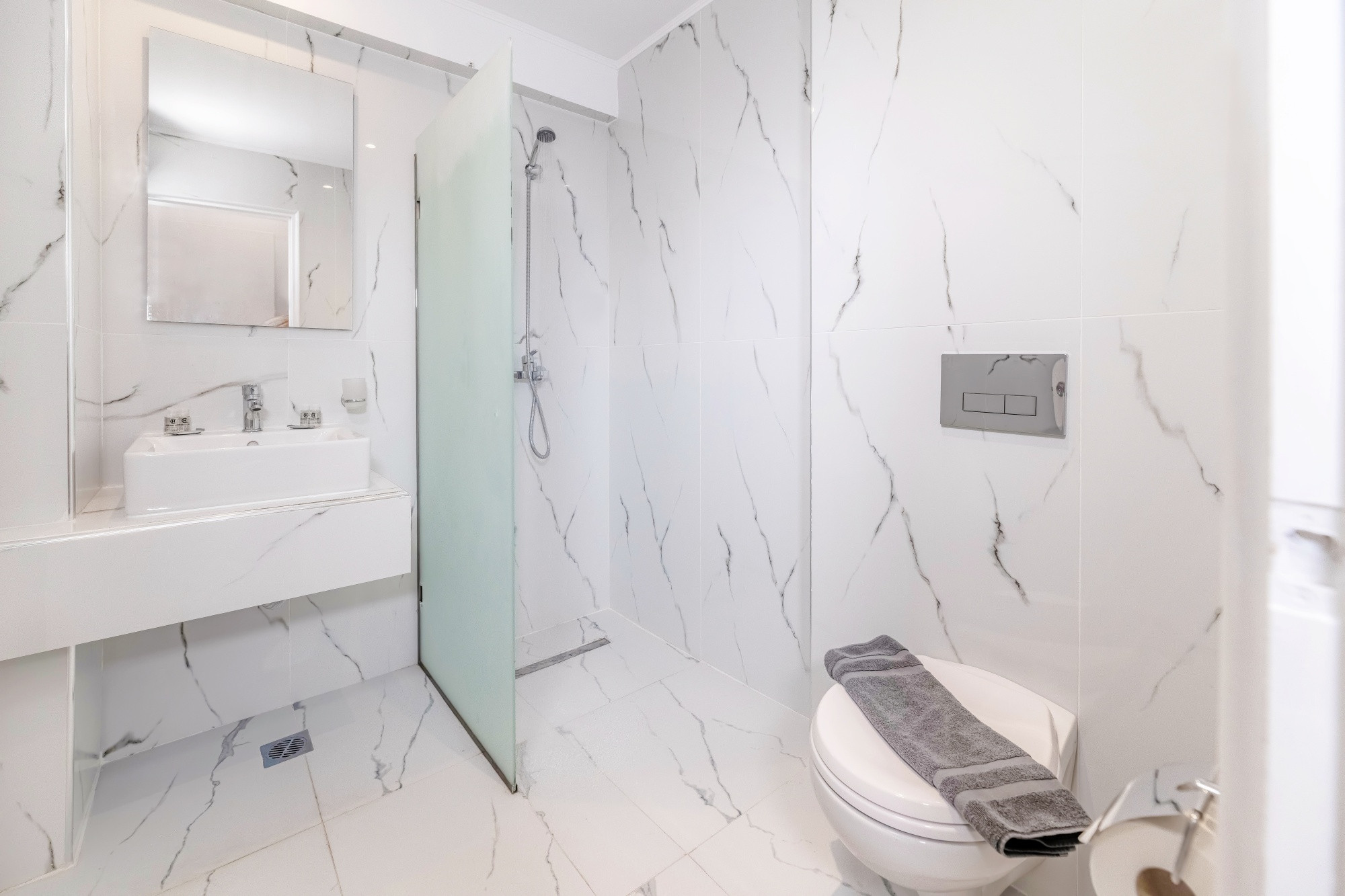 - fürdőszoba (fürdőkád vagy zuhanyozó, hajszárító, WC)
